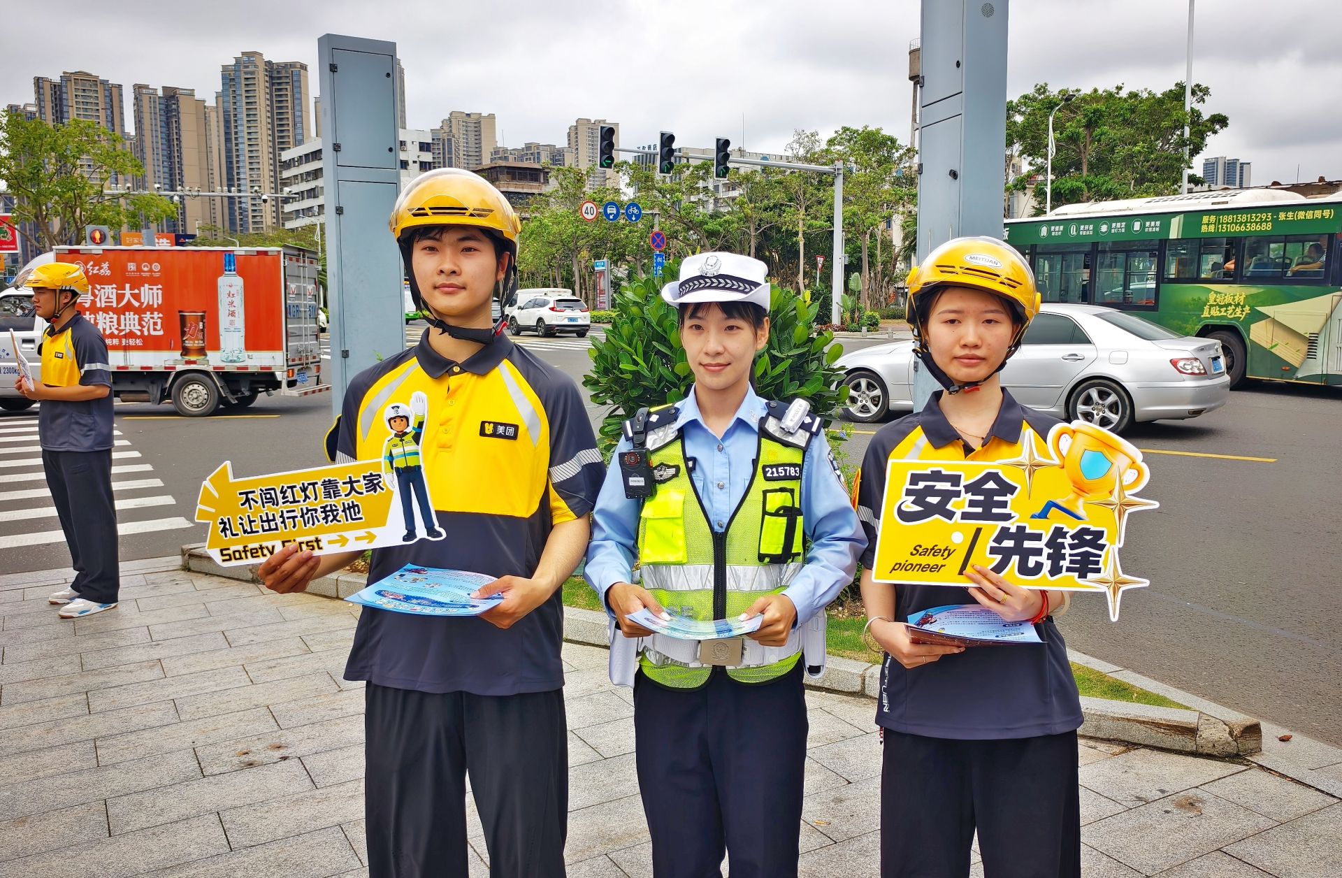 湛江交管联合美团开展交通安全主题宣教活动
