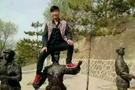 男子被曝坐女红军雕像头顶上拍照 面带微笑(图)