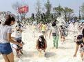 烟台千人“枕头大战”迎中秋 美女帅哥齐上阵