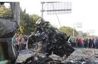 江苏小轿车与三辆大巴追尾 被挤成碎块