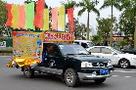 赤坎交警组织彩车上街巡回宣传文明交通