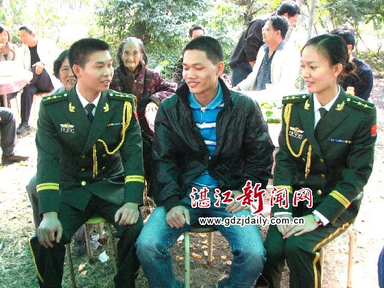 湛江新闻网讯:12月8日上午,在吴川市黄坡镇唐禄村,记者见证了一个简朴但充满喜庆的“欢送吴志华同志入伍”仪式,20岁的吴志华即将奔赴向往已久的军营,成为他们家族的第10名军人。记者获悉,唐禄村的这个家族,自1958年走出了第一名军人开始,几十年与军队结下了的不解之缘,四代共出了10名军人,是名副其实的“军人之家”。