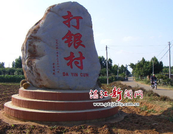纵观乡村琳琅满目的村名标志,要数位于徐闻县迈陈镇打银村入口处的村名标志最为独占鳌头。该村名标志是用超大型的天然石雕刻打磨而成,造价达1.3万多元,是由村中的外出人员梁康明老板诚心出资建成的。整座村名标志高3.8米,宽2.3米,重达20多吨。据村中的长老介绍,梁康明老板从事长途客运行业,经常热心回家乡做公益事业,单出资建这座村名标志,从寻石、运石到建村名标志,就花费了他不少精力和时间。