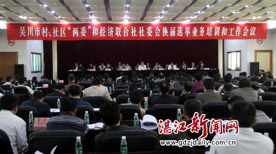 吴川市村、社区党支部(总支部)委员会和村民委员会将于2011年上半年任期届满,按有关规定,需依法依规进行换届。同时,根据湛江市的部署,该市农村集体经济联合社社委会也提前与村、社区“两委”同期换届。为做好换届工作,会议传达了省、湛江市村、社区“两委”和经济联合社社委会换届选举工作会议精神,并对有关工作进行了部署。
