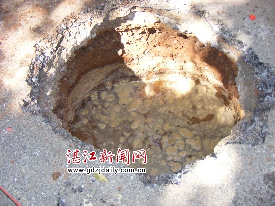 湛江新闻网讯:12月29日早上7点许,位于徐闻县东方一路中段偏北侧路面突然下陷,形成了一个直径1.3米、深近2米的大窟窿。路面突然下陷,给该路段交通造成诸多的不便。据附近商铺一些老板反映,窟窿在昨天夜里已经下陷,只不过表层下陷面积比较小(约60厘米),幸亏有好心群众取来一张废沙发椅子盖住当标志,才避免过往人车掉落窟窿。在现场上,有经验的群众分析此下陷的窟窿是跟该处有过水井致松软而影响。
