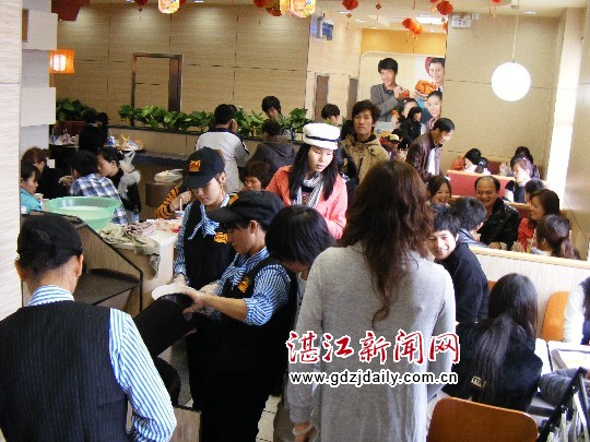 湛江新闻网讯:新的一年新的希望。兔年新春伊始,今天是大年初一(2月3日),徐闻县城处处喜气洋洋,在街上、公园、广场、茶楼、超市等场所,人气火旺,无不洋溢着喜庆吉祥的节日氛围。商场、餐饮、旅店等行业,生意最为火爆,员工加班加点,到处呈现一派“旺”气。在县城,处处可见市民快乐幸福的笑脸。
