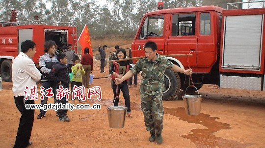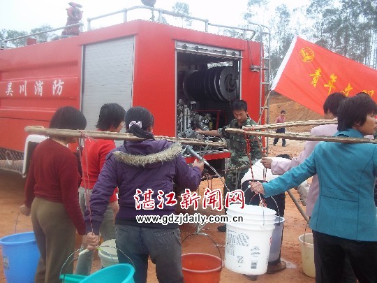 11日下午2时许,吴川消防大队红色的水罐消防车缓缓驶进上岭村,早就在村口等候的村民大声欢呼,脸上焦急的表情被欢喜所代替。消防车一停稳,消防官兵们立即下车接好水管为村民接水。由于现场接水的村民多,为了方便村民接水,消防官兵一边维持秩序,一边挨个为他们接水,尽管有的官兵衣服、鞋子被水溅湿了,但他们没有任何怨言,并主动帮助老人、残疾人和小孩送水到家。半个小时过去了,每户村民的水桶都陆陆续续盛满了水。随后,大队官兵又将消防车内所剩的水灌入水井内留待使用。