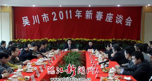 湛江新闻网讯:在日前举行的吴川市委市政府新春座谈会上,吴川市委书记、市人大主任曹兴,吴川市长江毅号召举全市之力,大干2011,共建幸福吴川。