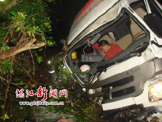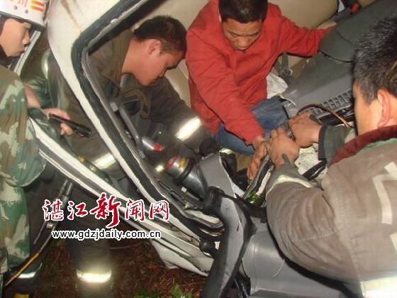 湛江新闻网讯: 2月17日凌晨4时多,吴川境内325国道黄坡大桥路段一辆货车侧翻至路基下沟渠里,一人被困车内。吴川消防官兵接报后迅速赶赴现场,经过近50分钟的紧张营救,成功将被困人员救出。
