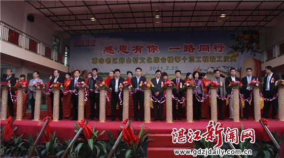 湛江新闻网讯:2月25日,吴川市长岐镇郑山村彩球高飘,锣鼓齐鸣,一派热闹景象,该村正举行文化综合楼等十项工程竣工庆典仪式。吴川市四套班子领导曹兴、江毅、杨彩兰等以及各界人士一千多人出席了庆典仪式。