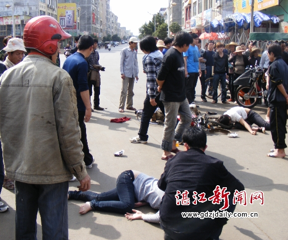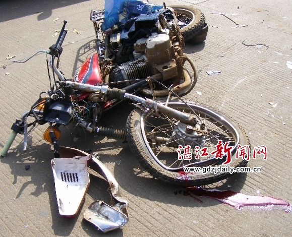 湛江新闻网讯:2月28日下午15时10分许,在徐闻县文塔路东段的大街上突发一宗车祸,逆向行驶的二轮摩托车同三轮摩托车猛烈相碰,造成3名青年现场严重受伤。