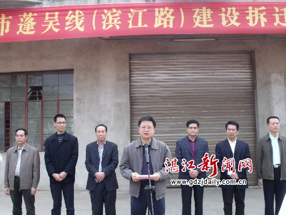 湛江新闻网讯:黄竹尾桥下,流水潺潺,暮春三月,暖阳普照。在今天这个大好的日子里,吴川市蓬吴线(滨江路)建设拆迁正式动工。市四套班子有关领导、沿线社区干部以及有关企事业单位领导出席开工仪式。
