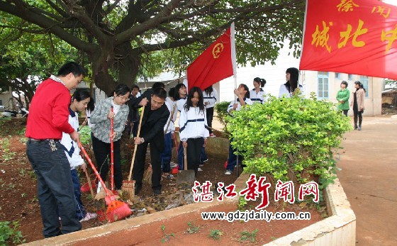 徐闻团县委组织城北中学团员到城北敬老院打扫卫生。徐大荣摄