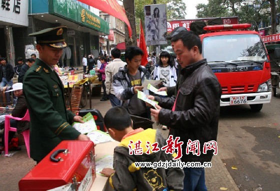 消防大队志愿者上街宣传消防知识。徐大荣摄