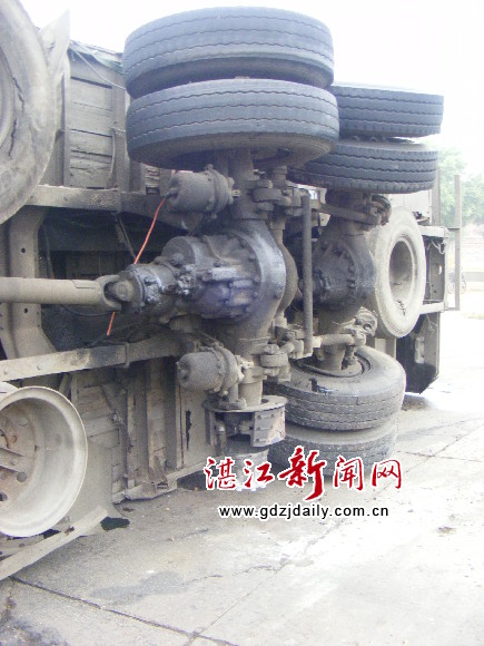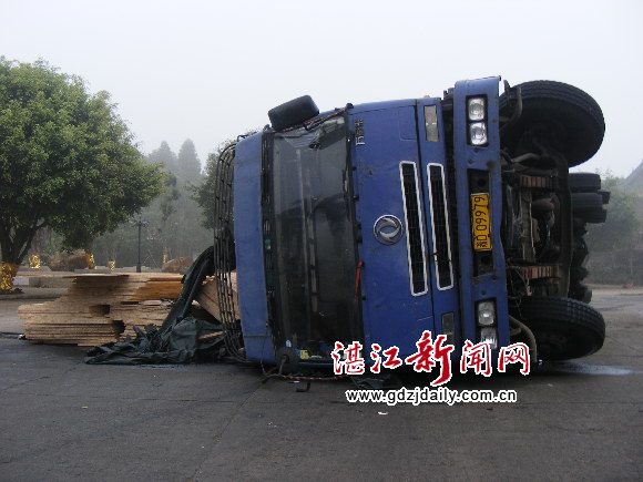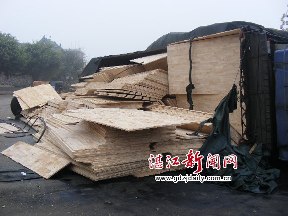 湛江新闻网讯:3月7日凌晨3时许,一辆来之海南省的大货车开至国道207线徐海路转盘路段时,突然翻倒路中央,造成满载一车(重约20吨)的木板全倾倒地上,机油滴流路面,幸无人员伤亡。