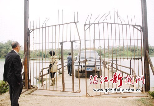 4月6日上午11时30分左右,在一摩托车司机的引路下,记者来到群众所反映的吴川市长岐镇山秀村委会山秀砖厂旁边的水浮桥,该铁桥长约40多米,宽近4米,仅可容一辆汽车通过,8个桥墩均由铁架支撑在水泥船上。