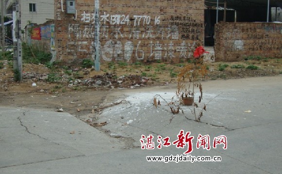 湛江新闻网讯:29日下午,笔者路经吴川市繁荣路和广江路交叉口处发现路面出现了一个塌陷宽近3米。随着车辆的来来往往,塌陷逐渐变大,十分危险,附近的市民找来了盆栽和树枝设障碍,提醒过往行人、车辆注意。