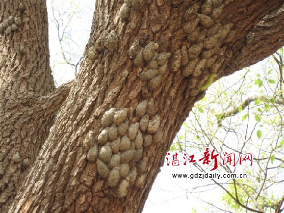 被毛毛虫蚕食光叶子的樟树