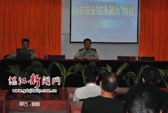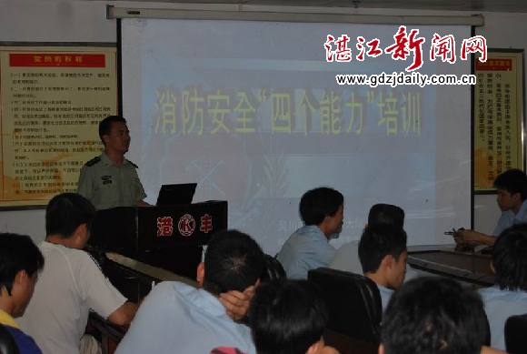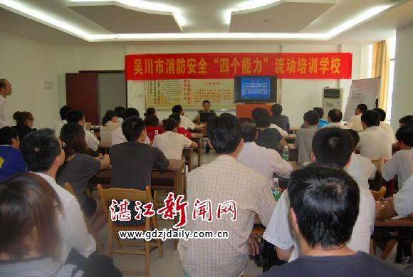 湛江新闻网讯:吴川市为扎实推进社会单位消除火灾隐患、扑救初期火灾、组织人员疏散和消防宣传教育“四个能力”建设活动,从“全民消防”大培训入手,自4月份成立“四个能力”流动培训学校以来,已对二十多个重点单位人员密集场所从业人员进行面对面的消防安全培训。