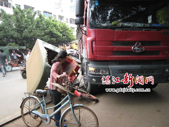 湛江新闻网讯:5月17日12时10分左右,徐闻县城徐海路林业局大门前突然发生一起大货车扳倒三轮摩托车的交通事故,幸亏有惊无险无伤亡事故发生,目前事故正在处理之中。