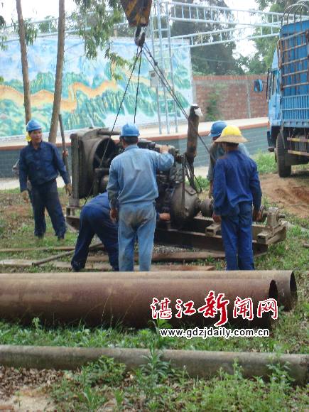 湛江新闻网讯:5月17日下午,粤西勘察院钻井队工人携带重型钻井机械进入徐闻县和安中学校园内安营扎寨,执行为期一个月的钻井任务。 钻井选址在离学校教学区较偏僻的足球场东北角(即露天舞台的北面)。钻井平台估计一天可以完成安装,随后即可进行挖掘操作。据了解,此井挖掘深度为400米左右,口径30厘米,预计1个月完成任务。挖掘成功后,将在井底安放检测仪器,主要用于勘测并收集粤西沿海地区地下水纹、地质、地震等相关信息,其现实意义十分重大。