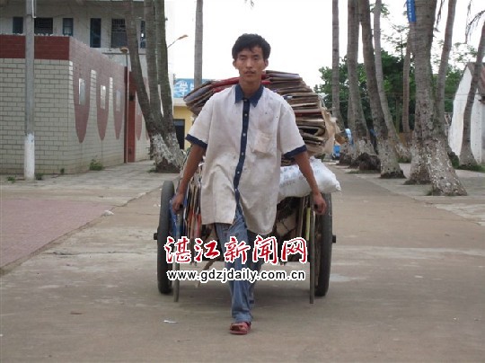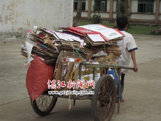 湛江新闻网讯:在徐闻县和安镇的大街小巷和各个居民区,人们经常看到一个貌似十五、六岁的、身材瘦弱、皮肤黑黑的小男人拉着一辆简陋的手推车一边高叫:“收破烂哦!收破烂哦”……