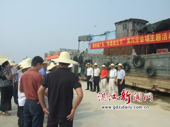 湛江新闻网讯:正值第四届广东省“休渔放生节”,5月27日,吴川市人大副主任陈亚汗,湛江市海洋与渔业局副局长林尤通等领导与渔民代表一起在博茂渔港对开海面进行渔业资源增殖放流。共投放斑节对虾1125万尾。