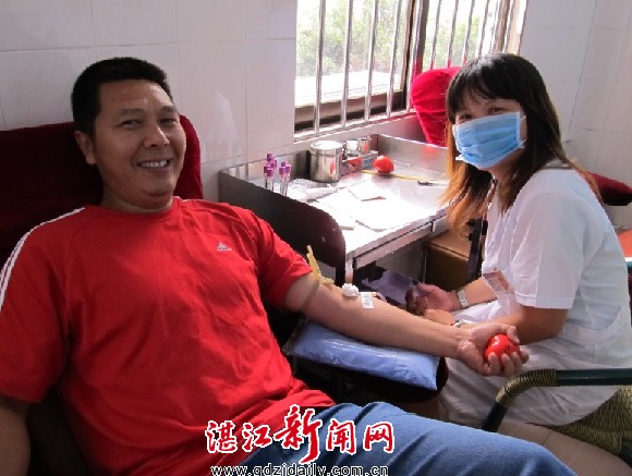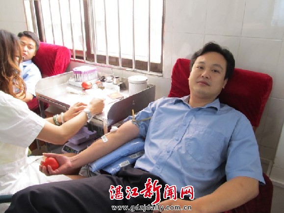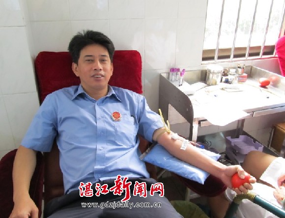 当天,吴川市献血办人头涌涌。记者得知该烟草局职工吴大阳已经第六次献血,就访问了他。吴大阳对献血有着积极的看法,他认为献血是一种奉献,是一种爱心的表达,并用自己的实际行动呼吁身边的亲朋好友积极献血。