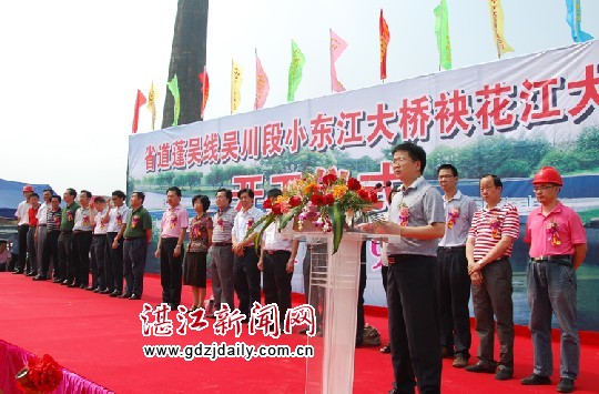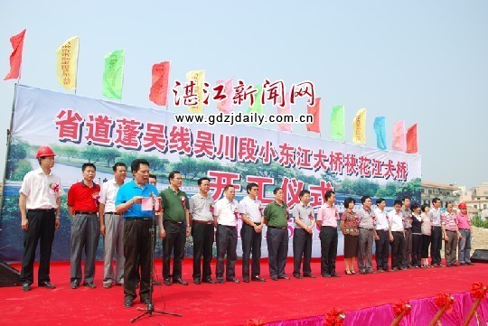 吴川市委书记、市人大主任曹兴,在开工仪式上宣布项目开工。吴川市委副书记、市长江毅,湛江市公路局纪委书记廖陆、广州市市政集团有限公司副总经理安关峰在仪式上致辞。湛江市交通运输局副局长周华、吴川市四套班子领导出席开工仪式。副市长邓观康主持仪式。