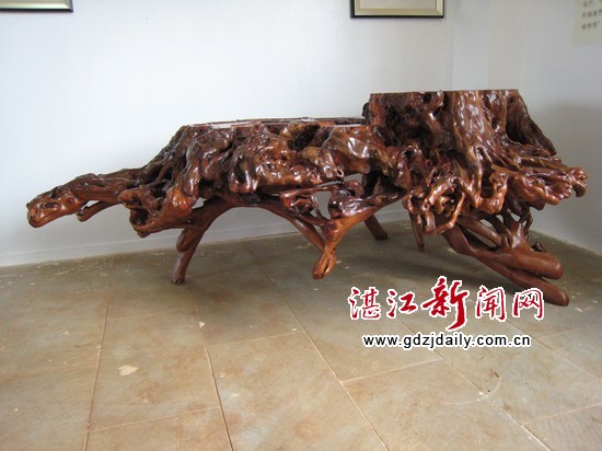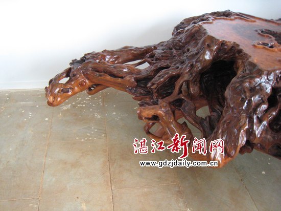 据朱姓朋友介绍,不久前,下桥镇一村民挖掘出一棵荔枝树头,外形酷似一只大乌龟,便请来根艺匠稍作修剪,就更酷似一只爬行的“大乌龟”,栩栩如生,令人观为叹绝。他看了非常喜欢,就与那位农民讨价还价,最后以12000元价钱买了回来。