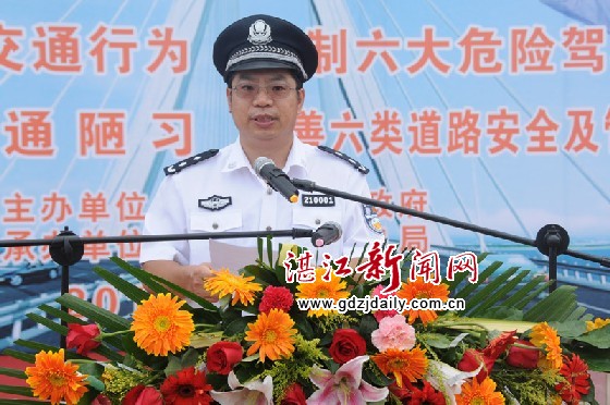 市委常委、公安局长张荣辉,市委副秘书长刘平,市政府副秘书长黄光启动“湛江市道路交通安全宣传教育信息发布机制”按钮。