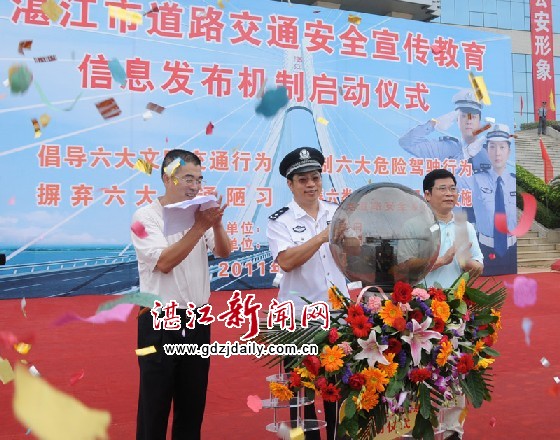 湛江市道路交通安全宣传教育信息发布机制启动仪式在市公安局指挥中心大楼前广场举行