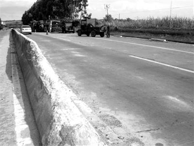 记者从徐闻县下桥交警部门了解到,近几年来,207国道雷州与徐闻交界处夜间已发生多起交通事故,而大多都是因为司机撞上道路中间的水泥安全防护栏。如今那段水泥安全防护栏都被货车碰撞“剃掉”10到20米的“头”了。