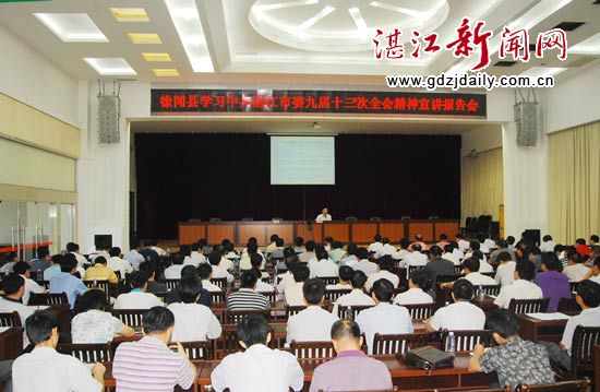 湛江新闻网讯:6月16日,市委宣讲团巡回到徐闻作宣讲报告,宣讲湛江市委九届十三次全会精神。徐闻县四套班子成员、县经济开发区主任、书记,县法院院长、县检察院检察长、各乡镇(街道)书记,县直副科以上单位党政正职,县委中心组秘书组成员等聆听了宣讲报告。徐闻县委副书记、政法委书记王盛主持会议并作讲话。