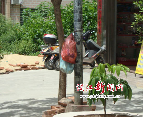 当笔者问到为什么有些住户会把垃圾挂在路灯柱或树上时,林小姐告诉笔者,因为垃圾留在门前“过夜”,很多时候会被流浪猫、老鼠“品尝一番”,所以就求个方便,把垃圾挂得高高的,不过这也算是较“文明”的啦,有的住户更缺德,每天晚上去散步,就把自家的垃圾带上,方便的就扔在其他住户的门前,可以“一起”放!