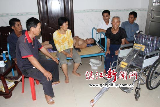 谢李贵是徐闻县西连镇大井中村村民。5月11日,他在西连镇丰隆村作建筑工,又称“水工”。在高空作业的他不慎摔下,当场两脚折断,腰部也骨折,急需6万多元住院治疗。家庭生活本来拮据的他,又要拿出6万元,谢李贵的老婆李碧静焦急得如火锅上的蚂蚁,一时不知如何面对。为了医治父亲的重伤,正读初一的大女儿谢翠毅然离开校园,辍学到深圳去打工赚钱,帮助家庭渡过难关。这一消息在该村传开后,该村群众纷纷慷慨解囊,10元……100元、200元的捐助,发扬一人有难,众人支持的传统美德,为谢李贵捐款12000多元,让他顺利住院治疗。