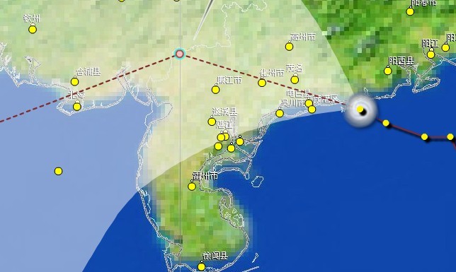 记者:目前海马在广东的电白县东南偏东约75公里的广东西部海面上,未来24小时它将以每小时15公里左右的速度向偏西北方向移动,逐渐靠近广东西部沿海。预计它会在今天上午在阳江到雷州之间的沿海地区登陆,受海马影响,湛江、茂名还有阳江、江门等地都会有暴雨到大暴雨。