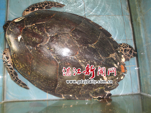 近日,徐闻渔政执法人员在徐闻北港铁路码头从桂K10025大客车查获一只160市斤的国家二级保护大海龟(如图),目前此案正在调查之中。