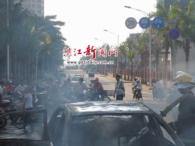 2011年7月5日,霞山区海淀路鑫海名城后门路口发生一起汽车自燃事件,霞山交警快速处置,配合消防官兵及时将火扑灭,及时消除了安全隐患。
