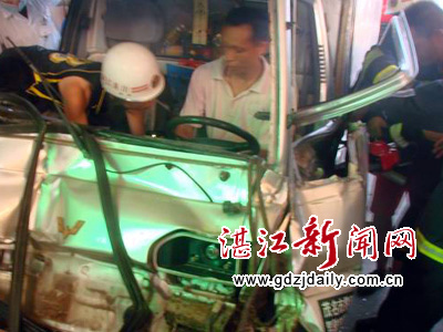 湛江新闻网讯:7月6日17时16分,广东省湛江市吴川消防中队接到报警称:位于吴川325国道塘尾收费站路段发生一起交通事故,导致一人受伤被困,情况危急,急需救援。吴川消防中队接到报警后,立即出动两辆抢险救援车和12名消防官兵,火速赶赴事故现场。
