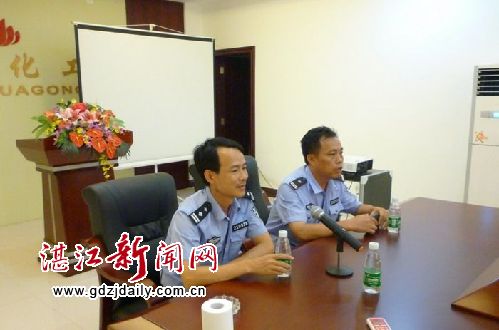 7月7日晚上,交警支队宣教科杨百宁科长、高速一大队廖长奎大队长带领民警走进湛江骏鑫化工城有限公司,宣传文明交通,与该公司负责人商讨预防交通事故工作,宣教科民警给该公司驾驶人上交通事故警示教育课。