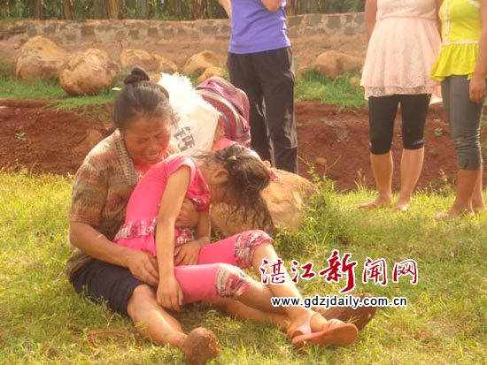 记者事发当天下午5时赶到现场时,出事女孩的尸体已经被捞起,而其母亲正抱着她的尸体坐在出事的水坑边哭泣。女孩的母亲一遍又一遍地呼唤着女儿的名字,旁边其他亲属也跟着低泣抹泪。据了解,死者叫邰某珍,今年11岁,原籍贵州省施炳县人。邰某珍的父母等亲属都在徐闻打工多年,她也是在徐闻出生长大,出事前在徐闻县郊一所小学读二年级。邰某珍的堂哥告诉记者,14日下午4时左右,邰某珍和大她一岁的姐姐以及另外两名小姐妹到住地附近的大水桥水库抓鱼。4名小女孩在用一个小鱼网抓鱼时,邰某珍不慎滑落到一个深近2米、约20平方米宽的一个水坑里发生溺水。