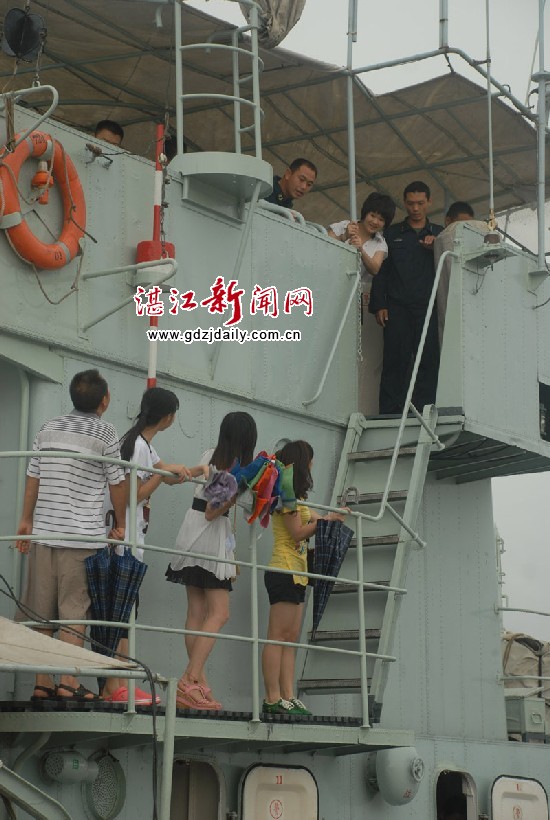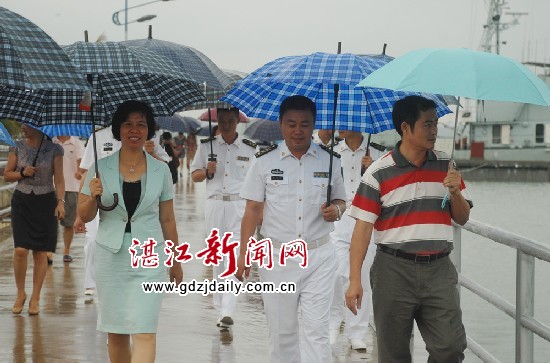 徐闻县委常委、宣传部部长戴吴金荣一行在驻徐大井部队领导的部同下参观军舰