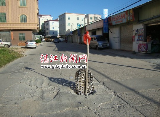 湛江新闻网讯:日前,市民向笔者反映,位于吴川市区山庄路的路面出现一个坑,过往车辆很容易“中招”。