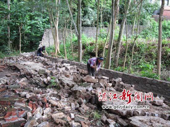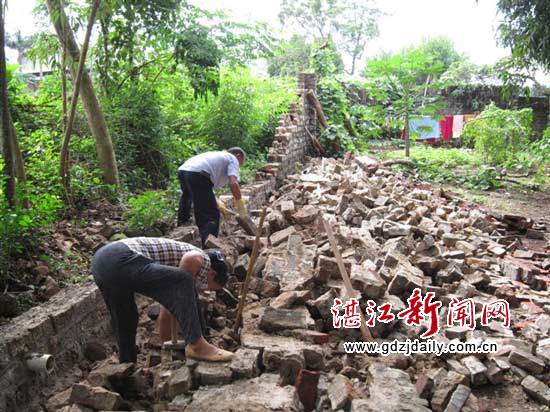 湛江新闻网讯:近日,笔者前往徐闻县人民公园游玩时,看到几名工人正在修补被大水冲跨的公园围墙。