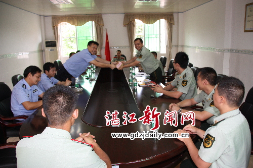 在“八一”建军节即将来临之际,7月29日,县委常委、公安局长易建华率带县公安局副局长卢宁忠、叶就及指挥中心主任陈忠华、警务保障室主任王辉明等前往徐闻公安边防大队、消防大队、湛江武警支队徐闻中队慰问广大公安现役部队官兵,并给他们送上慰问金。