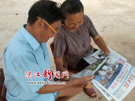 湛江新闻网讯:这几天对于徐闻县海安镇广安村村民倪兴荣来说是个激动的日子——8月3日中共中央政治局委员、广东省委书记汪洋到他的家里做客,汪洋书记的亲切关怀至今让倪兴荣一家激动不已,8月5日,倪兴荣与老伴拿着载有他一家与汪洋书记拉家常图片的南方日报久久观赏,脸上写满了幸福。其实,在广安村,像倪兴荣这样心情的村民可不少。汪洋书记对广安村的关怀深深激励着广安村民,他们表示将用行动给汪洋书记交一份满意的答卷。