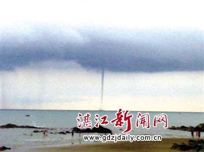 昨日18时许,吴川吉兆海面出现一条冲向天空的黑柱,慢慢地海面上卷起黑雾浪花,随即出现“龙吸水”现象,水柱渐渐向南移动,20多分钟后逐渐消失。