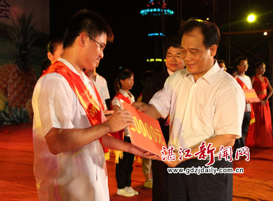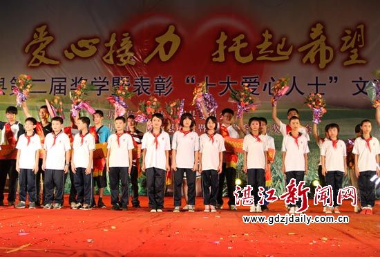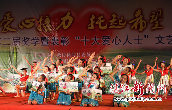 湛江新闻网讯:徐闻县8月11日晚在县文化广场举行主题为“爱心接力、托起希望”第二届奖学暨表彰“十大爱心人士”文艺晚会,给该县24名优秀学子颁发奖学金,并表彰了10名爱心人士。该县领导侯德耀、杨世金、全可文、戴吴金荣、林建光、符贤、黎亦鸿、易建华等及奖学协会会长王天爱,徐闻外地商会、同乡会、获得奖学金的学子等出席颁奖晚会。