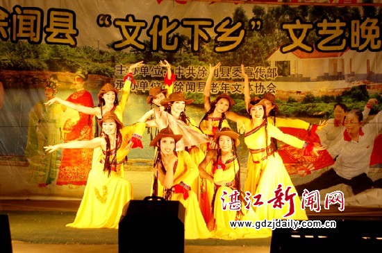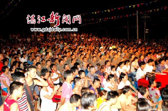 湛江新闻网讯:歌声鼓乐闹村前,奖励学子舞翩翩。8月13日晚,徐闻县角尾乡许家寮村2011年优秀学生颁奖晚会在该村影剧场隆重举行。晚会由县委宣传部组织的“送戏下乡”文艺队赴村捧场。